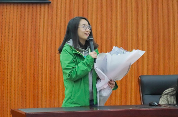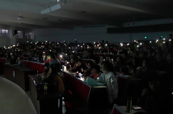 本次月讲评的第一个环节是“再见刘老师,你好思辰姐”。惊喜的全场关灯,温暖的手机灯光合唱,动情改编的歌曲《突然好想你》,这是年级同学送给辅导员刘思辰的一份心意,回忆并感谢这一年她对大家的付出与关爱。刘老师怀抱鲜花与同学们泪话离别,一同企盼民航学子的美好未来。