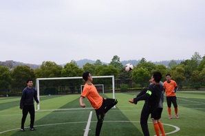 4月14日上午,比赛在成人动漫 师生们的期盼中精彩开赛。细雨蒙蒙,却浇不灭师生们比赛的热情,短暂的热身活动之后,秉着“友谊第一、比赛第二”的精神,由我院老师组成的“1队”与由我院学生组成的“2队”两支代表队在摄像机前合影留念,并相互握手致意。片刻的准备之后,我院与赛师生迅速进入状态,四散开来,排兵布阵,在球场上奔跑起来。