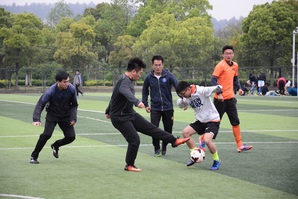 经过近90分钟的激战后,比赛在师生们意犹未尽的欢笑声中落下了帷幕。最终1队以4:1的比分战胜2队,赢得了本次友谊赛的胜利。
