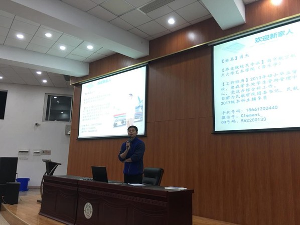 在年级大会的最后还有一个彩蛋,就是介绍新成员。肖杰老师将加入民航17级的大家庭,对此,同学们表示热烈欢迎。