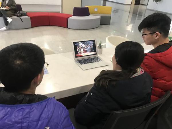 早在本次交流会的前一天,即两会召开的当天,17级党小组全体成员早早聚集到一起,一同围坐收看两会开幕会盛况。交流会当天,全体成员首先一同观看了有关两会介绍的视频。视频以动画形式对两会流程进行了生动详细的解读,使大家对于两会有了更进一步的了解。
