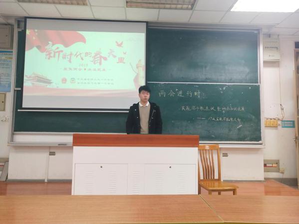 2019年3月4日晚上七点整,成人动漫 17级党小组在6102教室举行了以“两会进行时:民航学子热点议暨两会知识竞赛”为主题的两会学习交流会。陈佳昊同学主持了本次学习交流会。