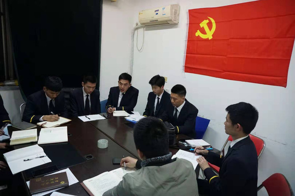 2019年3月18日21点,飞行学院党支部17级党员小组于成人动漫 将军路校区怡园19栋二楼会议室召开组织生活会。会议分四个环节进行:学习十九大精神和两会精神、重温入党仪式、开展自我批评和互相批评、辅导员吴泊鋆老师进行会议总结。