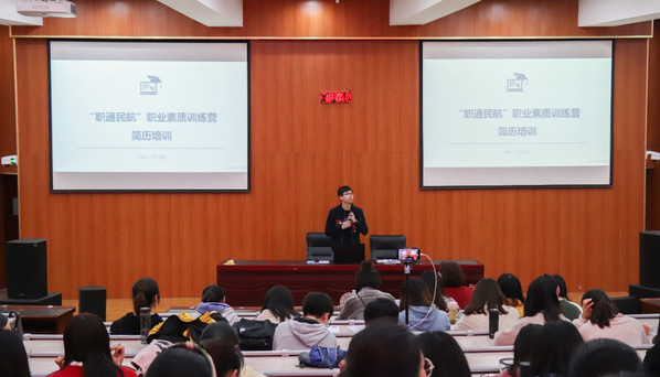 同时,在本次培训中康冲老师从民航专业的角度出发,对张月铭老师的简历指导做了一些补充。康老师告诉同学们要认清民航的形势,认清岗位需求,努力塑造一个符合岗位需求的自我,并在简历中与岗位需求相贴近,同时告诫同学们要去除限制性信念,求职时将眼界放开。