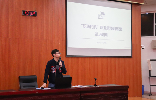 2019年3月20日傍晚19点,成人动漫 在2110教室开展了“职通民航”职业素质训练营的首期活动——简历培训。本次培训邀请到了就业指导办公室的张月铭老师和经济与管理学院辅导员康冲老师,对正在为职业招聘做准备的大三同学们进行专业的简历制作指导。