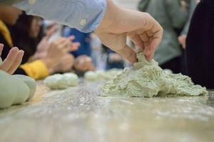 活动伊始,餐饮中心的工作人员提前为参与活动的同学们准备好了面团,馅料以及保鲜膜等相关材料,并且演示了青团的制作过程。稍作准备之后,接下来的时间就交给了同学们进行自由创作。