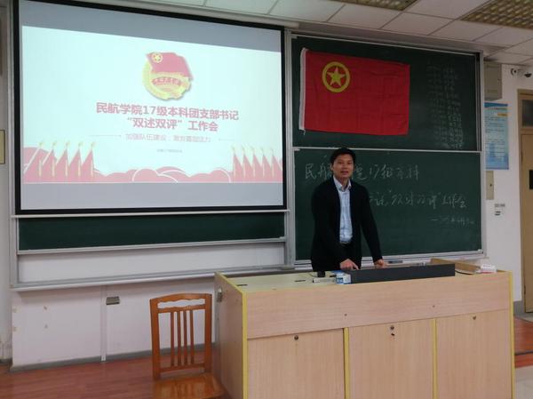 2019年4月15日晚,民航/飞行学院17级本科团支部书记“双述双评”工作会在将军路校区6403举行,该工作会为0717团总支为深入实施“磐石工程”,加强团支部书记队伍建设,总结2018年度支部工作,充分激发基层团支部建设活力而开展的团干部会议。