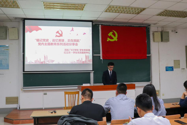 党内主题教育系列活动由“红立方”学生党员服务中心主办,旨在加强党员教育,发挥党员先进性,分享会以“铭记党史,追忆英雄,志在民航”为主题,解决了入党积极分子、发展对象学习过程中存在着的从理论到理论,从书本到书本,仅仅局限于理性层面,甚至流于空泛的问题。