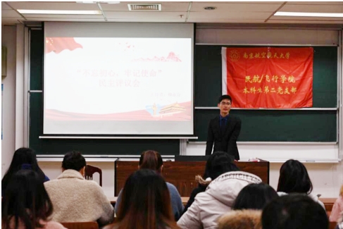 2019年11月29日,民航第二党支部在10307开展“不忘初心,牢记使命”专题组织生活会暨民主评议会,检视党支部及个人存在的问题,并学习了十九届四中全会,党支部书记万旅、全体党员和预备党员参加了此次会议。