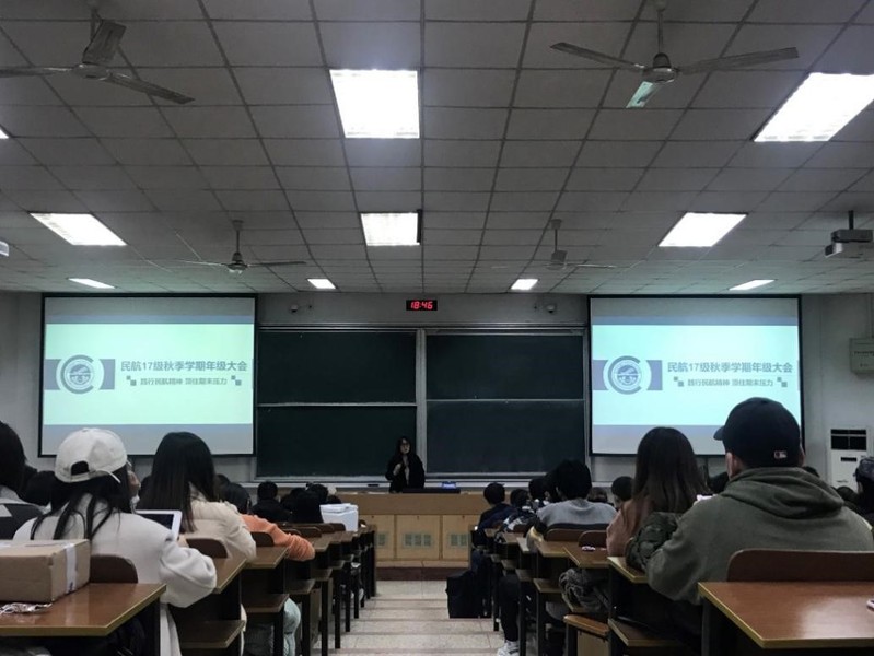 2019年12月16日晚18:45,在4201教室,由成人动漫 17级辅导员朱岚老师主讲,召开了成人动漫 17级2019-2020学年第四次年级大会。本次会议以“践行民航精神,顶住期末压力”为主题,就民航精神、考/保研/就业解读、考试纪律及假期安全三个方面进行展开。