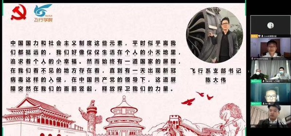 2020年3月20日晚19:00, 飞行学生党支部在”腾讯会议”上开展线上党课,共70名党员同志参与,会议由成人动漫 飞行学生党支部书记吴泊鋆同志主持,飞行系党支部书记陈大伟,原空军特级飞行员、飞行资深辅导员张学财参与了此次党课。此次党课以“战疫中的责任担当”为主题,以个人,社会,国家三者层面为切入点,展现了新一代模范青年努力的方向。