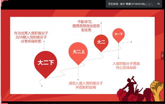 民航2018级黄潇同学分享了团支书的工作经历,大一下入党积极分子的落选并没有让他一蹶不振,反而让他不断积累,厚积薄发,在思政工作和思想引领上不断前行,最终在大二下作为优秀入党积极分子分享所得所想。