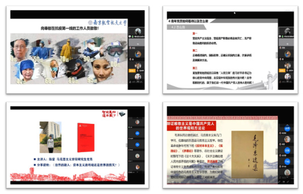为贯彻落实校党委关于疫情防控中进一步加强支部党建和新时代爱国主义教文件精神,涵育支部党员新时代家国情怀,强化党员先锋模范意识,增强支部党员“三自—自律、自护、自修”教育引导,4月4日下午,成人动漫 研究生党支部与经济与管理学院、马克思主义学院党支部联合开展云上战“疫”微论坛,活动以支部三“微”党建平台为依托,结合“云上党建”形式展开。活动邀请到了马克思主义学院徐军教授担任活动嘉宾,学院研究生党员蔺瑞管、郑海龙进行了党课主题分享,来自成人动漫 、经济与管理学院和马克思主义学院的50余名研究生党员参加了此次微论坛。