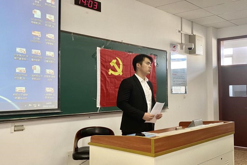 答辩伊始,硕博联合党支部书记刘睿禹强调了党员队伍的战斗堡垒作用以及合格的党员应具备的基本素养,介绍了答辩流程和答辩评委,并要求评委秉持客观、公正的原则全面考核入党积极分子的综合素养。