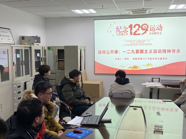 12月22日晚,成人动漫 举办信仰公开课---一二九爱国主义运动精神传承,本次公开课由2018级本科生辅导员陈欢主讲,学院将军路校区团干、学生代表参加此次信仰公开课。