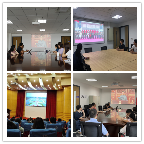 学院全体领导班子成员在天目湖校区参加完升旗仪式,与天目湖校区领导班子及校区学生一起观看了庆祝大会直播。