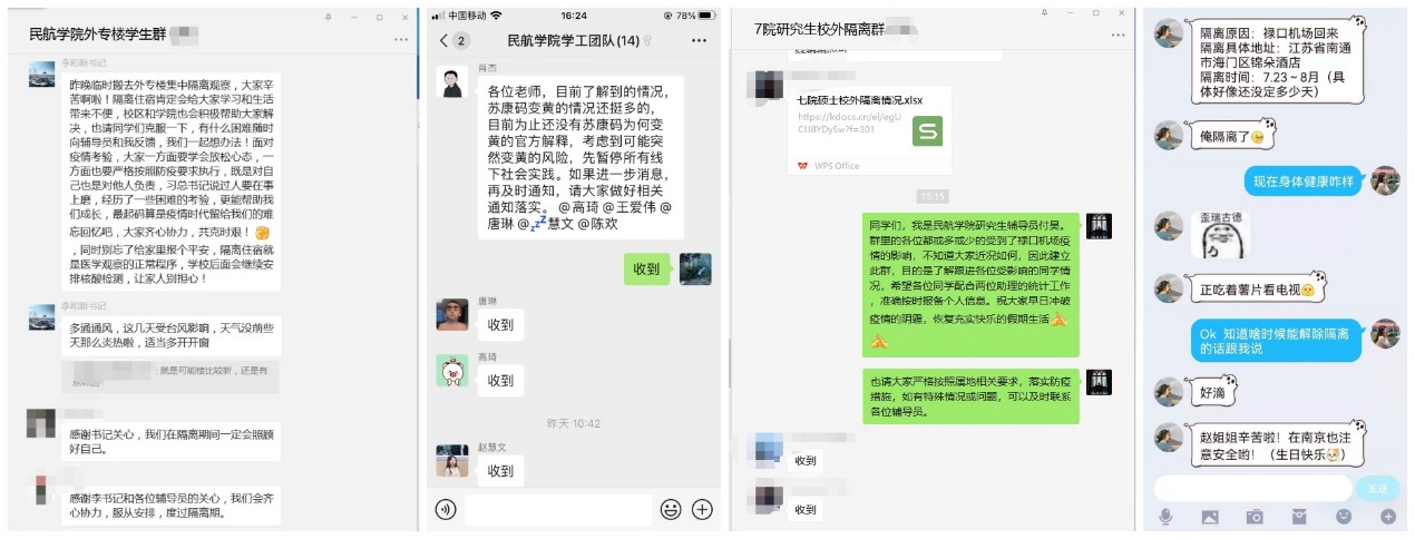 目前,学院有408名学生因复习备考、社会实践、科研、实习等原因留校,其中本科生71人,研究生337人。在疫情反复、极端天气频发的关键时期,成人动漫 推出一系列有速度、有力度、有精度的暖心之举,多渠道加强与学生的联系,关心关爱学生。学院领导直接对接外专楼隔离点学生,第一时间送去学院的关心,通过微信群及时了解学生动态和诉求并协调处理;各年级建立校外医学隔离学生联系群,关注校外隔离学生的身心健康;院领导及辅导员先后走访慰问留校学生、给校内隔离点学生送防疫生活物资、为学院实验室配发防疫消毒用品;点对点了解河南籍学生家中情况,关心实践实习学生,落实关爱政策措施;执行在校本研学生每日信息更新制度,做到在校学生信息“一日一更新”、返乡学生离校-途中-到家“全过程关注”。在院领导及学院老师的关心引导下,留校学生落实学校各项防疫要求,积极配合完成各项疫情防控工作,并始终保持良好的生活和学习心态。
