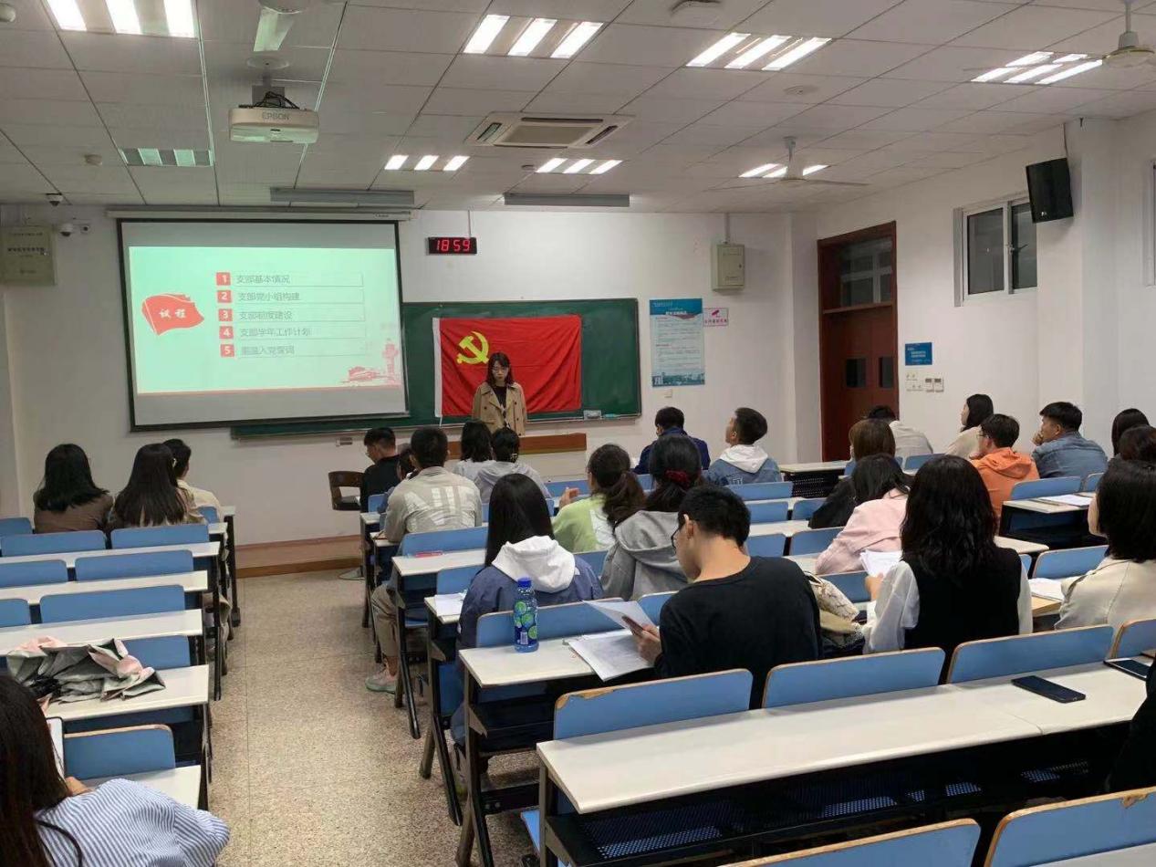 首先,党支部书记王梦尹向全体党员介绍了支部基本情况,接着21级硕士生党支部全体支委作自我介绍,描述自身工作职责并对未来进行展望,展现出全体支委争取推动支部建设全面过硬的信心与决心。