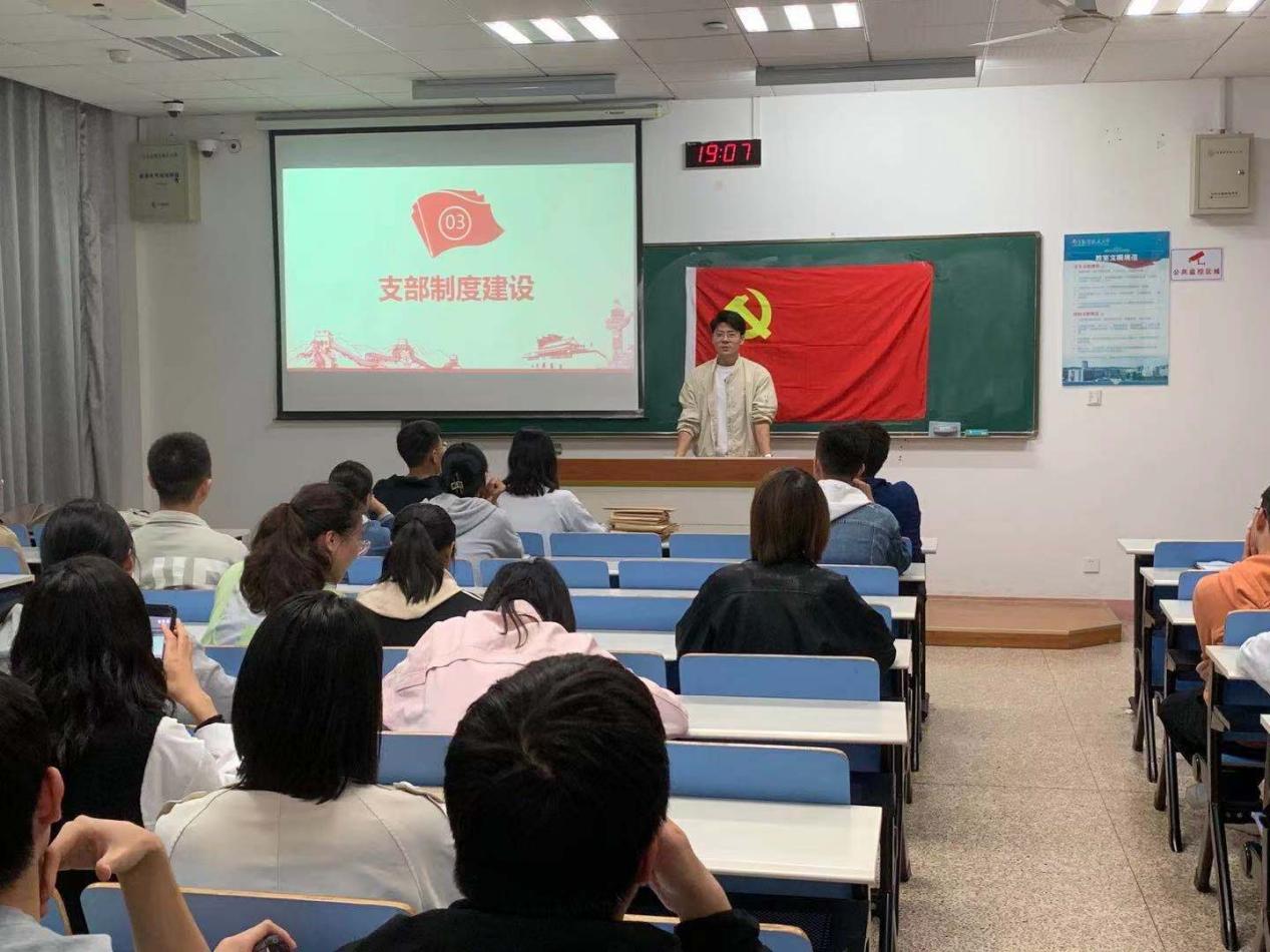 随后,党支部书记王梦尹、刘凌峰分别就支部党小组构成、党员奖惩制度和支部学年工作计划三个方面为全体党员进行了详细的讲解。为了更好地开展日常学习和实践活动,根据不同职能需求,将支部划分为摄影组、宣传组和组织策划组三个党小组。同时,为保持支部内积极进取的良好氛围,经支部大会决议确定在学期末采用两支部党小组互评和各支部支委会评价结合的综合测评体系,对党小组进行推优评选。在支部奖惩制度建设方面,本次会议向全体党员同志重点强调四条红线不能触碰,支部将对每位党员从生活作风、工作能力、思想建设、活动表现等四个维度给予考核,为鼓励争先创优,提高党员觉悟,学年末将推选支部党员先进个人,以起到模范带头和榜样引领作用。学期工作计划主要从落实三会一课制度、主题党日活动、组织生活会、民主评议会和党员发展大会等内容出发,全面深化支部组织建设,强化党员理论学习,努力构建制度完备的新生党支部。