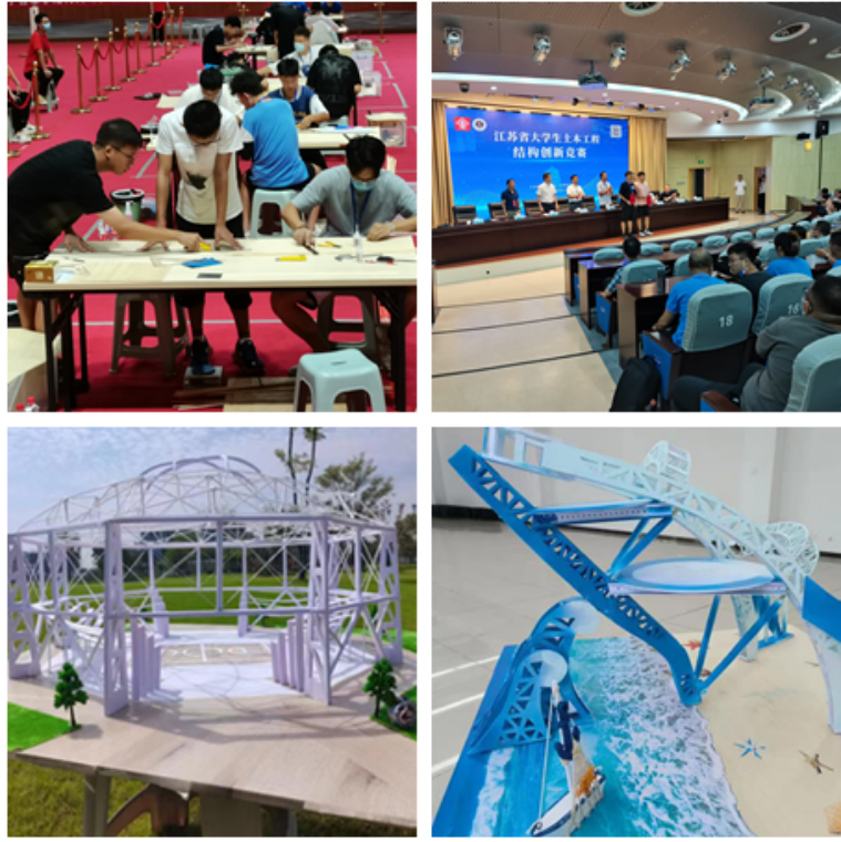 江苏省大学生土木工程结构创新竞赛由中国土木工程学会教育工作委员会江苏分会主办,是一项在全省设置土木工程专业的各高校中开展的具有导向性、示范性和群众性的大学生课外学术科技创新竞赛活动,每年举办一届,是全省高校土木专业本科生中的品牌赛事。全国赛更是土木工程学科培养大学生创新精神、团队意识和实践能力的最高水平学科性竞赛,被誉为“土木皇冠上最璀璨的明珠”。本次省赛共有东南大学、河海大学、南京工业大学、陆军工程大学、中国矿业大学、成人动漫 、南京理工大学等36所省内高校参赛。现场模型制作与加载组的参赛队伍有34支,模型展示组的参赛队伍有60支。通过比赛和交流,同学们顽强拼搏、攻坚克难,不仅培养了结构设计和建造的创新理念,锻炼了设计、动手、表达等方面的综合能力,也获得到更高平台与全国高手切磋交流和展现自我的机会。