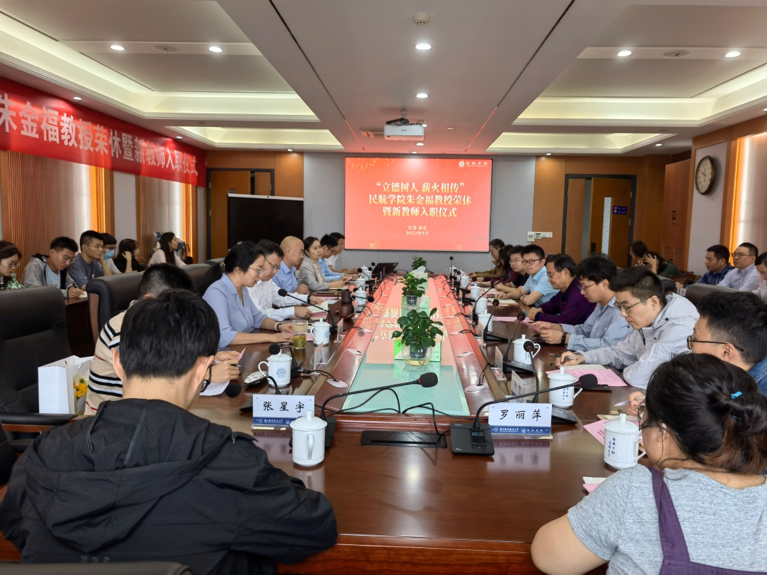 刘建成表示,学校和学院的发展离不开长期耕耘在教学、科研和管理服务一线的教职工的辛勤付出和无私奉献。以朱老师为代表的的老教师门默默无闻奉献、孜孜不倦耕耘的精神是学院的宝贵财富,是年轻教师奋发向上的精神动力,青年教师是学院未来发展的希望,大家一定要不负嘱托,勇于接过老同志肩上的重任,为学院改革发展贡献力量。同时还希望所有老师将树立高尚师德,筑牢立身之本、潜心教书育人,永葆教育本分、矢志修身治学,奋力争创一流的民航精神传承下去。在树立高尚师德上做表率,在强化业务水平上下苦功,在增强创新能力上有作为,努力使自己成长为党和人民满意的好老师。仪式最后,刘书记代表全院师生再次祝福朱老师退休生活充实幸福,美满祥和,祝福各位新教师在学院工作期间取得更大的进步和发展。