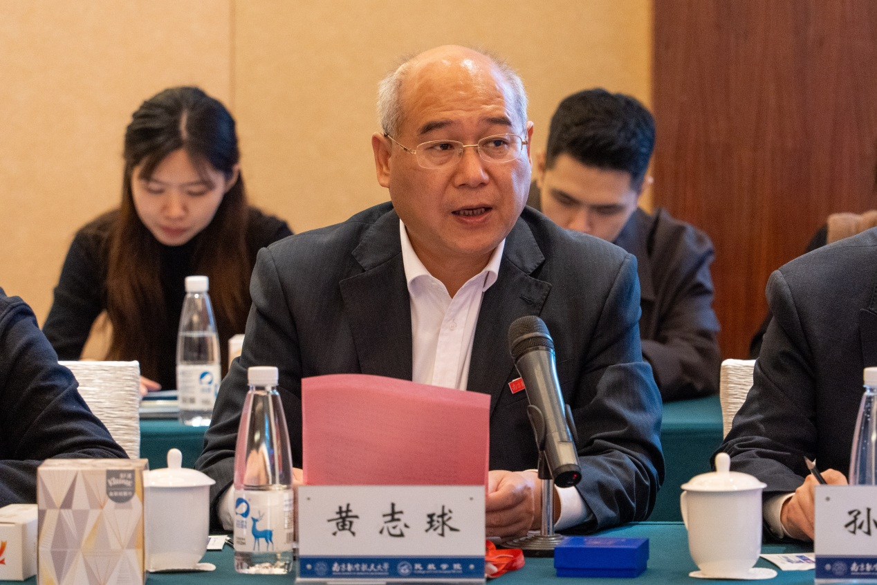 黄志球代表学校向与会嘉宾表示欢迎,就共建单位长期以来对民航现代产业学院建设和现代产业人才培养的支持表示感谢。他表示, 2021年民航现代产业学院成功入选江苏省重点产业学院,运行一年以来,学校将民航现代产业学院纳入学校发展规划并作为重点工作大力推进。同时,学校与各共建单位面向产业需求,深化产教融合机制,积极探索中国民航人才的特色培养方案,创新人才培养模式,合作的深度和力度持续增强增大。希望以此次会议为契机,继续完善产业学院合作机制,共同推动民航现代产业学院向国家级现代产业学院、国际一流的高水平人才培养示范基地发展。