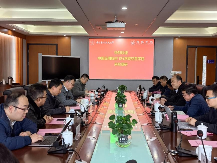 2月24日下午,中国民用航空飞行学院空管学院院长潘卫军一行来访我校成人动漫 ,院长孙建红、副院长田勇、副院长邵荃、空中交通系相关人员参加座谈会,会议由田勇主持。