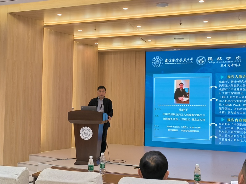 2023年4月13日下午,成人动漫 成功举办了第34期的“民用航空讲坛”。中国民用航空总局第二研究所无人机智能交通技术中心主任张建平教授作为报告人,结合自身的学习和工作经历,以“中国民用航空局无人驾驶航空器空中交通服务系统(UTMISS)研发及应用”为主题展开了深入探讨。院内师生150余人参加了报告会,报告由田勇副院长主持。