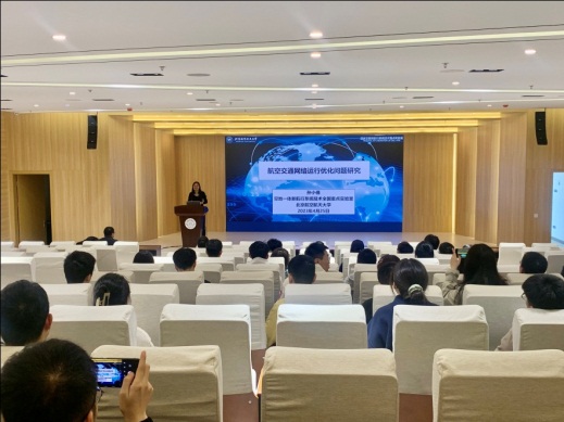 孙小倩教授在报告会上从枢纽选址问题模型与算法、航空公司一体化鲁棒优化排班这两个方面来介绍航空交通网络运行优化问题这一课题。她表示,航空相较于其他交通运输方式,在速度快、效率高的同时,对安全、航空运输精细化运营有着极高的要求。如何在交通流量日益增长、运行环境复杂多变的条件下合理安排生产调度,是全行业面临的重大挑战。