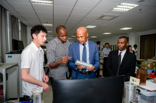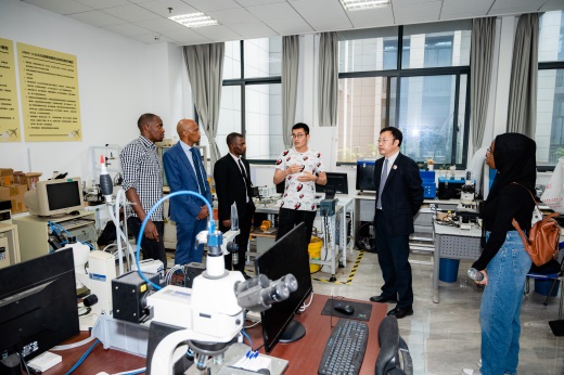 6月26日下午,非洲联盟轮值大使、科摩罗驻华大使毛拉纳•谢里夫先生莅临成人动漫 ,参观各系实验室。成人动漫 院长孙建红、校国际合作处副处长张国权、国际教育学院副院长李勇、成人动漫 副院长邵荃、院长助理孙蕊及各实验室负责人等陪同参观。