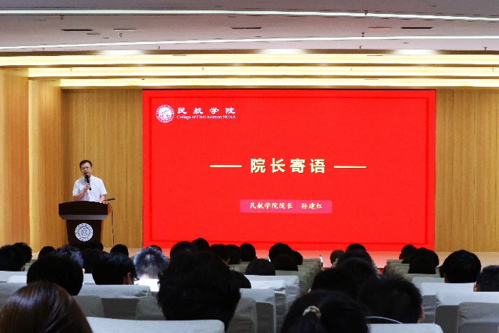 院长孙建红代表学院全体师生对2023级研究生新同学的到来表示热烈欢迎。值此建院三十周年之际,勉励新生“让人生历程和民族复兴进程同频共振,努力成为民航科技的新生力量”,他对新生提出了三点希望,希望研究生坚定思想、认清时代,探索创新、实干笃行,志存高远、胸怀家国,始终做有追求、有本领、有担当的民航人。