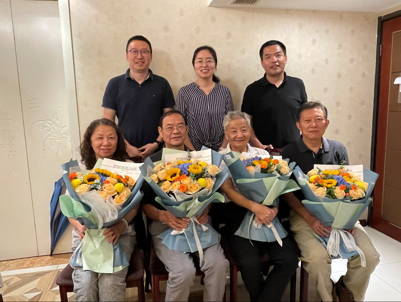在第39个教师节来临之际,成人动漫 党委副书记、工会主席王艳带领交通运输系主任胡荣和支部书记唐小卫,走访慰问交通运输系许柏园、夏洪山、许俐和朱金福等退休教师,为他们送去诚挚关心和节日祝福。