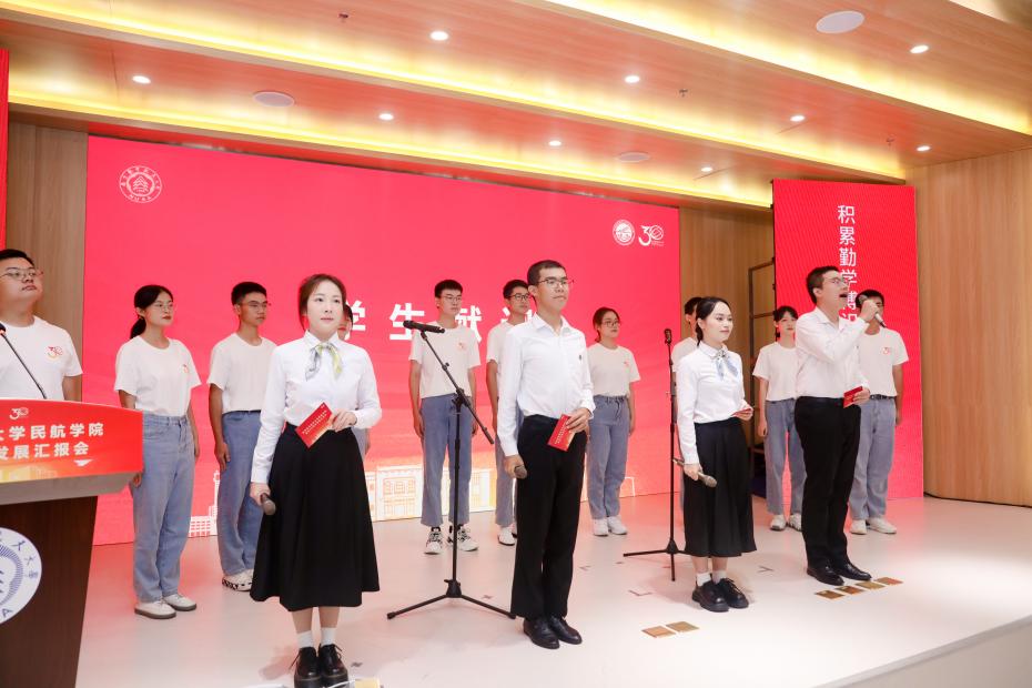 春华秋实,桃李芬芳。学生代表们集体献词,一首声情并茂的诗朗诵表达了对成人动漫 最真挚的祝福和青春荣校、民航强国的坚定决心。誓言字字铿锵、掷地有声,展现出新时代民航学子积极主动投身交通强国民航篇章建设的昂扬风貌。
