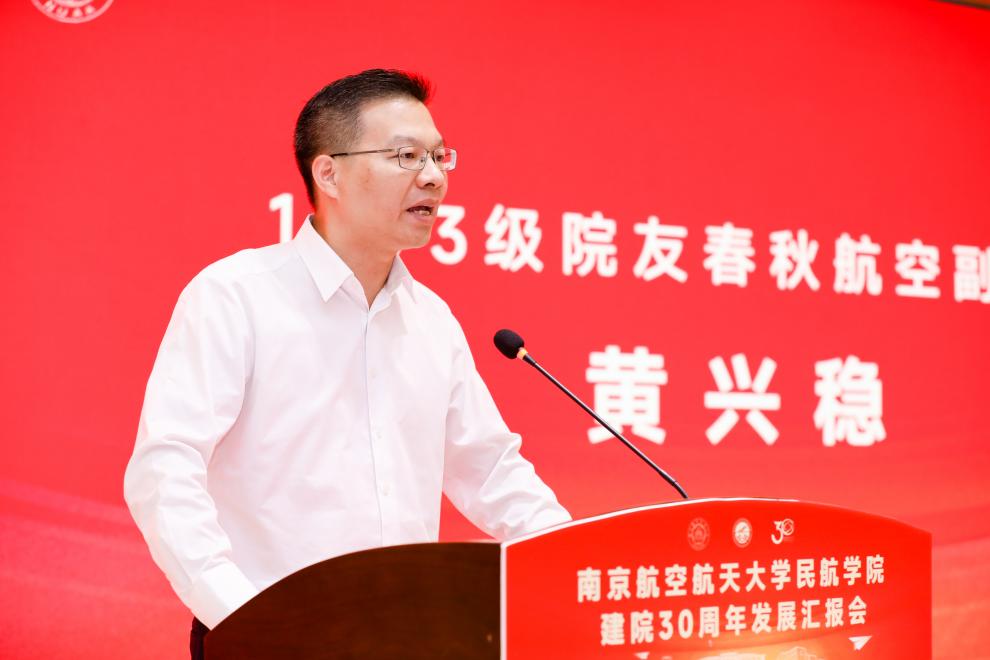 黄兴稳作为成人动漫 院友代表致辞,他回忆了自己与母校的缘分渊源和在成人动漫 的求学经历,对于成人动漫 的栽培表达了深切的感恩之情,并为成人动漫 送上真挚祝福,祝愿成人动漫 抓住新时代民航发展的重大机遇,乘势而上,早日建设成特色鲜明的世界一流成人动漫 。