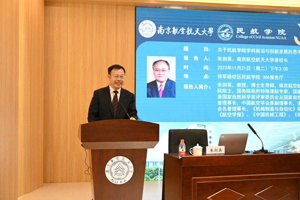11月21日,成人动漫 成功举办第49期“民用航空讲坛”。成人动漫 原校长、成人动漫 首任院长朱剑英教授作“关于成人动漫 学科前沿与创新发展的思考”为题的报告。成人动漫 院长孙建红、党委副书记王艳、副院长邵荃及院内师生200余人参加报告会,报告由孙建红主持。