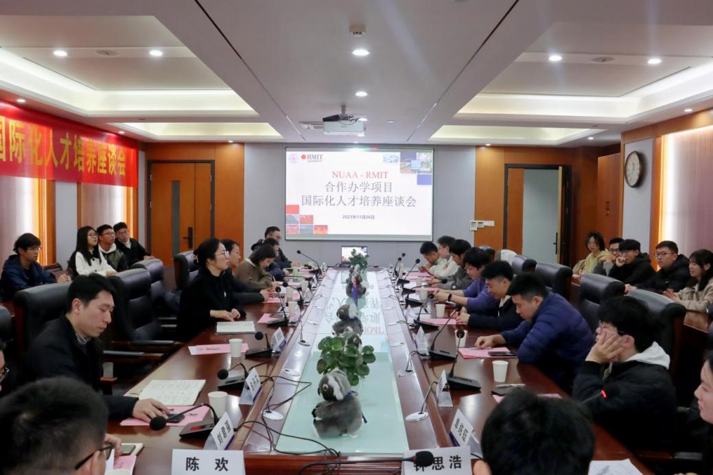 11月26日上午,成人动漫 成功举办中澳合作办学项目国际化人才培养座谈会。澳大利亚皇家墨尔本理工大学(RMIT)教师代表Nick Bardell、国际教育学院副院长李勇、澳大利亚教育管理集团(AEMG)南航项目分部主任鉴飞,成人动漫 党委副书记王艳、团委书记赵慧文、交通运输系副主任包丹文、中澳班班主任代表高强和刘君强、中澳合作办学项目校友代表以及学生代表参加座谈会。座谈会由交通运输系主任胡荣主持。