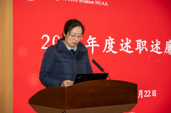 院长孙建红代表学院领导班子作2023年度学院工作总结并作个人述职述廉汇报。他从扎实推进“一融双高”建设、提升民航特色办学水平、坚决守牢安全底线、工会工作暖心走心四个维度对学院党建工作、师资队伍、教育教学、学科科研、国际合作、人才培养、行业服务、安全发展、工会等方面工作取得的成效进行汇报,并对学院2024年工作要点进行研究梳理。他指出,未来学院将学院坚持面向民航、立足民航、服务民航,紧盯“厚民航”要求,围绕民航发展的两条主线“安全与智慧”,依托重点实验室和工程技术研究中心等平台,构建高水平民航科教体系。