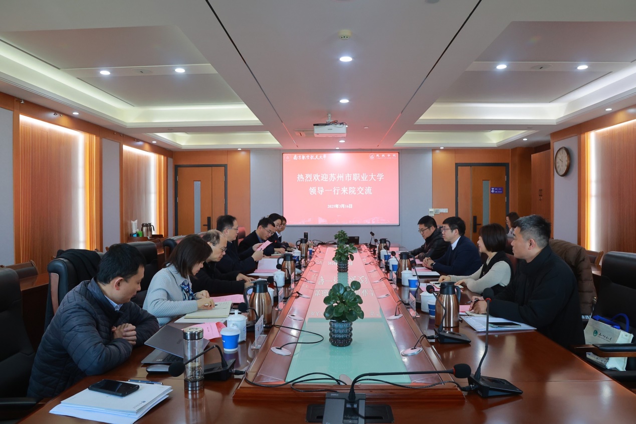 3月16日,苏州市职业大学校长陈峻一行围绕低空经济行业产教融合共同体建设主题来院调研交流。校党委常委、副校长张启钱,院长张卓然、空中交通管理系统全国重点实验室副主任胡明华、学院党委副书记王艳,副院长吴薇薇、田勇、邵荃参加座谈会,会议由张卓然主持。